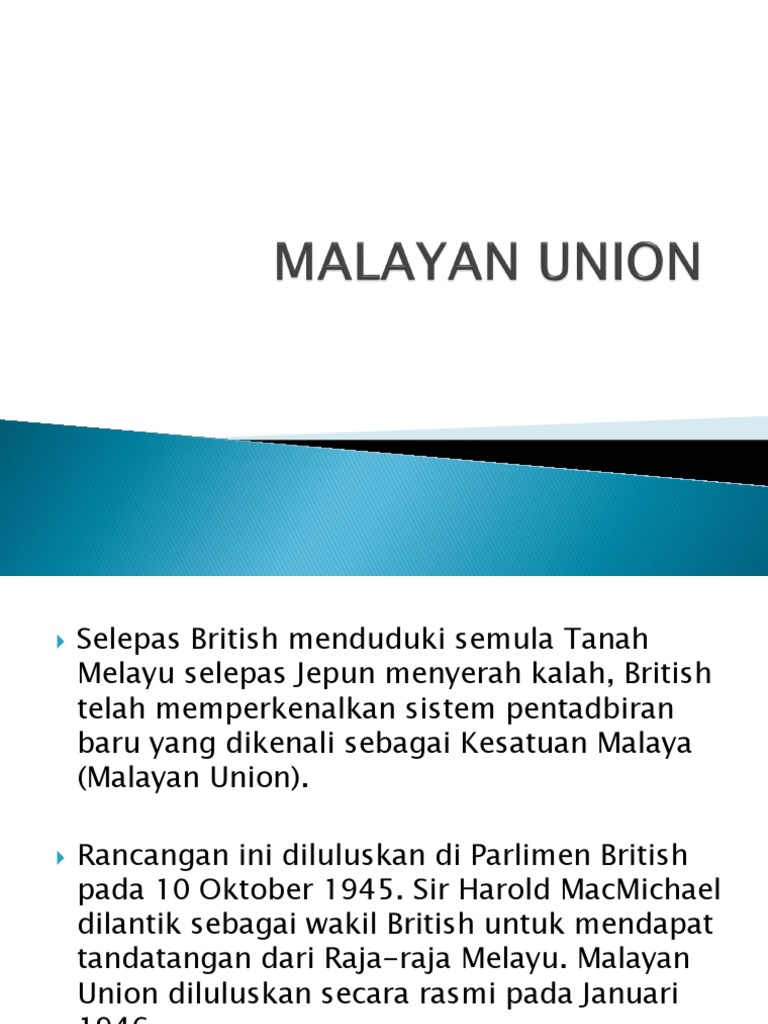 Malayan Union Dan Persekutuan Tanah Melayu Ppt Download